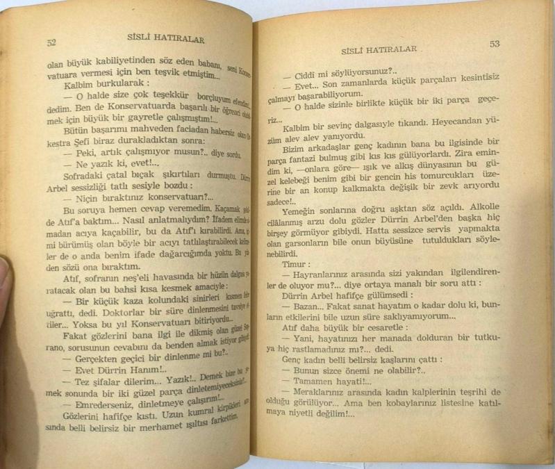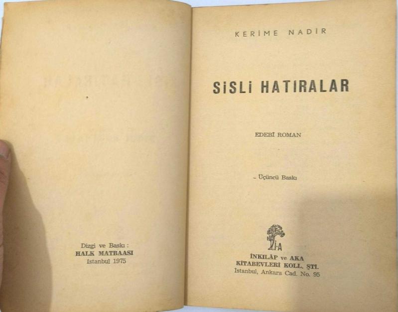 📖 Sisli Hatıralar – Üçüncü Baskı (1975) Kerime Nadir İnkılâp ve Aka Kitabevleri – 1975 Edebi Roman – Üçüncü Baskı Türk popüler edebiyatının en çok okunan kalemlerinden Kerime Nadir’in Sisli Hatıralar adlı romanı; geçmişin gölgesinde kalan aşklar, kırgınlıklar ve kalpte silinmeyen izler üzerine kurulmuş duygusal bir hikâyedir. Sisler arasında kalmış bir hatıranın izini süren kahraman, aşk ile gurur, umut ile hayal kırıklığı arasında gidip gelirken; okur da satır aralarında kaybolur. Kerime Nadir’in akıcı dili ve güçlü duygu betimlemeleri, dönemin romantik atmosferini başarıyla yansıtır. 1975 tarihli üçüncü baskı olan bu nüsha, yazarın geniş okur kitlesine ulaştığı yılların izini taşır. Türk edebiyatında nostaljik aşk romanlarını sevenler ve Kerime Nadir koleksiyonerleri için değerli bir eserdir.