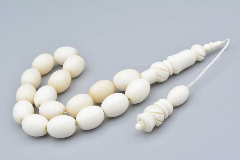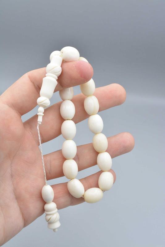 Sistemli Oyma İmameli İri Boy Balina Kemiği Efe Maskot Tesbih 1.Kalite Orijinal Balina Kemiği Tesbih El yapımı balina kemiği tesbihtir. Balina kemiği tesbihimiz takımlı sistemlidir. Balina kemiği tesbihimiz günlük çekime uygundur. Orijinal balina kemiği olduğu için çektikçe zamanla renk almaya başlar. Balina kemiği tesbihimizin ölçüleri: Tane Ebadı: 11.5*14.5 Mm İmame Boy: 3.9 Cm Toplam Boy: 26 Cm Ağırlık: 45 Gram Ürünlerimiz doğal olduğu için renk tonlarında küçük farklılıklar olabilir. Tesbihlerde püskül modelleri stok durumuna göre farklılık gösterebilir.