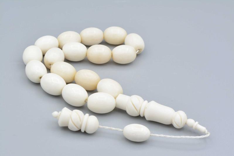Sistemli Oyma İmameli İri Boy Balina Kemiği Efe Maskot Tesbih başlıklı antika/koleksiyon objesi Türkiye menşe’lidir. 2000 ve sonrası dönemine aittir.