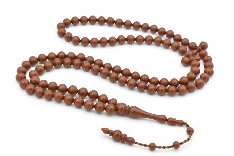 Sistemli Sığırcık Kesim 99 luk Açık Kahverengi Toz Kehribar Tesbih başlıklı antika/koleksiyon objesi Türkiye menşe’lidir. 2000 ve sonrası dönemine aittir.