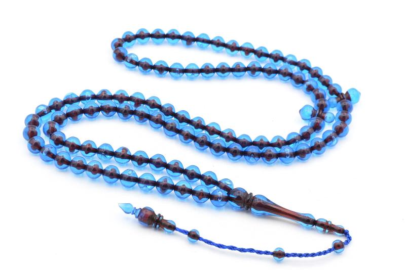 Sistemli Sığırcık Kesim 99 luk Bordo Mavi Toz Kehribar Tesbih başlıklı antika/koleksiyon objesi Türkiye menşe’lidir. 2000 ve sonrası dönemine aittir.