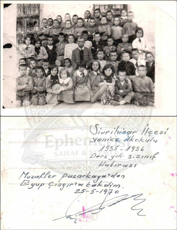Sivrihisar Yenice İlkokulu 1935-1936 ders yılı 3. sınıf hatırası. (Orijinal Fotoğraf, S/B, 1935, 9x14 cm.), en son bir ay önce güncellenmiştir.