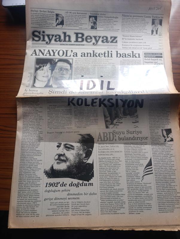 Siyah Beyaz Gazetesi - Turkish Newspaper - 15 Ocak 1996 - bugün Nazım Hikmet'in doğum günü - ANAYOL'a anketli baskı - Süleyman Demirel Bizans kurnazı - refah partisi'nde küskünler hareketi - Nazım Hikmet'in çevirmeni Lussu Türkiye'de - Avrupa Birliği 96 için karamsar - söyleşi Şevket Belgin - ABD suyu Suriye bulandırıyor - Şimdi de korucu karakolları - öğretmen dünyası dergisi 17 yaşında - AK Parti milletvekili Kahraman Emmioğlu bütün okullarda Osmanlıca okutulsun - DSP'li Çetin Bilgir iman tazeledi - Metin Göktepe olayında gelişme - İngiliz solu yol ayrımında - Bill Clinton'dan çok taraflı görüşme - islamcılar 24 Aralık'ı değerlendirdi yazan kelime Ata Yazı Dizisi - Füsun Demirel Fotoğrafı - felsefeci yazar öğretmen aktör Şahin Yenişehirlioğlu - Galatasaray'ın savunması koridor - Beşiktaş'ın 3. Lig takımına yenilmesi - Fani Madida Antalyaspor'un göz bebeği - Ülker play off'a doğru - Türkiye'nin ulusal serveti insan gücü - tuvalette okumak hemoroid yapıyor - Başbakan Tansu Çiller, Ünsal Gündoğan tarafından kaleme alınmıştır. Siyah Beyaz Gazetesi - Turkish Newspaper - 15 Ocak 1996 - bugün Nazım Hikmet'in doğum günü - ANAYOL'a anketli baskı - Süleyman Demirel Bizans kurnazı - refah partisi'nde küskünler hareketi - Nazım Hikmet'in çevirmeni Lussu Türkiye'de - Avrupa Birliği 96 için karamsar - söyleşi Şevket Belgin - ABD suyu Suriye bulandırıyor - Şimdi de korucu karakolları - öğretmen dünyası dergisi 17 yaşında - AK Parti milletvekili Kahraman Emmioğlu bütün okullarda Osmanlıca okutulsun - DSP'li Çetin Bilgir iman tazeledi - Metin Göktepe olayında gelişme - İngiliz solu yol ayrımında - Bill Clinton'dan çok taraflı görüşme - islamcılar 24 Aralık'ı değerlendirdi yazan kelime Ata Yazı Dizisi - Füsun Demirel Fotoğrafı - felsefeci yazar öğretmen aktör Şahin Yenişehirlioğlu - Galatasaray'ın savunması koridor - Beşiktaş'ın 3. Lig takımına yenilmesi - Fani Madida Antalyaspor'un göz bebeği - Ülker play off'a doğru - Türkiye'nin ulusal serveti insan gücü - tuvalette okumak hemoroid yapıyor - Başbakan Tansu Çiller adlı eser Türkçe dilindedir.