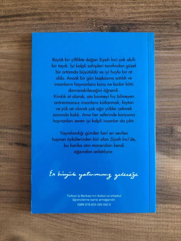 Güzel bir çiftlikte büyüyüp güzel bir at olan Siyah İnci satılırken onu ne zorlukların beklediğinden habersizdir. Fayton ve yük atı olarak çalıştırılacak, ata binmeyi bilmeyen insanlara katlanmak zorunda kalacaktır ama neyse ki iyi kalpli insanlar da çıkacaktır karşısına. Uzman isimlerce sadeleştirilip yayına hazırlanan ve her biri usta çizerler tarafından resimlenen klasik dizi kitapları minik kitapseverleri hiç eskimeyen klasiklerle tanıştırıyor.