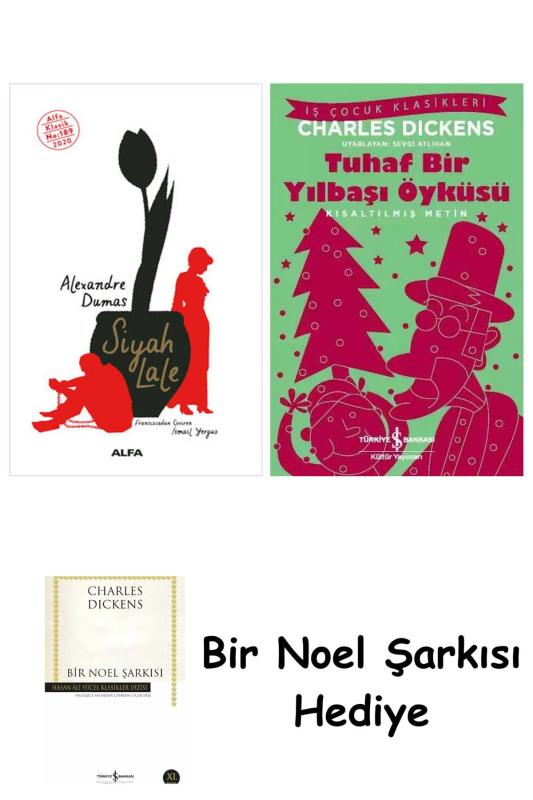 Siyah LaleZengin ve genç bir doktor olan Cornelis van Baerle lalelere karşı büyük bir tutku beslemekte, çiçek yetiştiricileri derneğinin büyük ödül koyduğu efsanevi siyah laleyi yetiştirmenin hayalini kurmaktadır.; Bunun için varını yoğunu ortaya koymuştur ve neredeyse başarmak üzeredir.; Ancak hiç tanımadığı gizli düşmanının kötü bir oyunu sonucunda, Cornelis işlemediği bir suç yüzünden kendini hapishane hücresinde bulur.; Her şeyin sona erdiğini, hayatının mahvolduğunu düşünüp büyük umutsuzluğa kapıldığı anda yeni bir duygu, yeni bir umut kıvılcımı kapısını çalar.; Monte Cristo Kontu ve Üç Silahşörler kitaplarıyla dünya edebiyatının en önemli yazarlarından olan Alexandre Dumas bu romanında tutku, aşk, kıskançlık, yalnızlık, kötülük ve iyilik gibi konuları ele alırken bir yandan da 17. yüzyıl Hollanda’sını ve siyaseti ustalıkla işlemiştir.; + Tuhaf Bir Yılbaşı Öyküsü – Kısaltılmış Metin: Ebenezer cimri, huysuz ve bencil bir adamdı.; Kimseyle arkadaşlık etmez, eğlencelere katılmaz, işinden başka bir şey düşünmezdi.; Çok parası olduğu halde, kimseye yardım etmezdi.; Dünya üzerinde, iyi kalpli yeğeninden başka seveni yoktu ama Ebenezer bunu da dert etmezdi.; Hiç kimseye ihtiyacı olmadığını düşünürdü.; Ancak Yılbaşı öncesi kapısını çalan bir ziyaretçi her şeyi değiştirdi.; Aslında ziyaretçi kapıyı çalmamış, doğrudan içinden geçmişti.; Bu garip ziyaretçinin, eski arkadaşına anlatacak çok önemli şeyleri vardı.; + Bir Noel Şarkısı: Charles Dickens (1812-1870): Viktorya Dönemi İngilteresi'nin en önemli romancısı kabul edilen Dickens orta sınıf bir ailenin çocuğuydu.; On iki yaşındayken ailesinin dara düşmesi sonucu bir fabrikada çalışmaya başladı ve romanlarında büyük bir isabetle aktardığı işçi sınıfının hayatını gözlemleme fırsatını elde etti.; Dickens'ın belki de en popüler eseri Bir Noel Şarkısı 1843 yılının Noel'inden hemen önce yayımlanmış, ilk baskısı günler içinde tükenmiştir.; Noel'in insani yönüne vurgu yaparak bu bayramın kutlanışını değiştirmiş, Viktorya Dönemi'nde Noel'in canlanmasına katkıda bulunmuştur ve İngiliz toplumunu öyle çok etkilemiştir ki kahramanının soyadı 'pinti' anlamında sözlüklere girmiştir.; Cimri, nemrut Ebenezer Scrooge'un, ona geçmişini, bugününü ve geleceğini gösteren üç hayaletin yardımıyla gerçekleşen büyük değişimini anlatan bu modern masalın sıcacık ışığı, sözünü saklamayan bir toplumsal eleştirmen olan Dickens'ın içinde yaşadığı gerçek dünyaya yorumunu da aydınlatır.; Bir Noel Şarkısı günümüze dek birçok dile çevrilmiş, defalarca sahneye, sinema ve televizyona uyarlanmıştır.; Siparişleriniz, kargo sürecinde zarar görmemesi için dikkatle paketlenerek gönderilir.; Dilerseniz hediye paketi seçeneğinden faydalanabilirsiniz.; Ayrıca sevdiklerinize özel bir sürpriz yapmak isteyen müşterilerimiz için kişiye özel hediye notu hazırlanabilmektedir.; Hediye paketi ve not taleplerinizi sipariş esnasında belirtmeniz yeterlidir.; Ürün görsellerinde ve açıklama kısmında belirtilen tüm ürünler eksiksiz ve belirtilen şekilde gönderilmektedir.; Müşteri memnuniyeti önceliğimizdir.; Ürünle ilgili her türlü soru, talep ve destek için Ürün Sorusu bölümünden bizimle iletişime geçebilirsiniz.