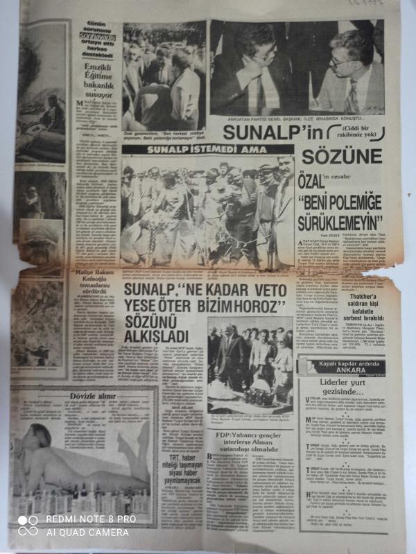 Siyaset Doğum günü Gazetesi -Ana Vatan Partisi başkanı Turgut Özal-maliye Bakanı Adnan başer-milli eğitim Bakanı Hasan Sağlam-emzikli eğitime bakanlık susuyor -me EDP Genel başkanı Turgut Sunalp-ne kadar veto yese Öter bizim horoz sözünü alkışladı-federal Almanya koalisyonu yabancı gençler isterlerse alman Vatandaşı olmalıdır-dövizle alınır-Tayyar Şafak-kapalı kapılar ardında Ankara-Almanya’nın eski başbakanı Herr Schmidt şimdi enfiyeci oldu-Sonbahar havadis gazetesi-Ayhan Başoğlu-bulmaca-bugünkü falımız-dış ticaret açığı büyüyor-ithal pirinç TMO ambarlarında çürüyor-Adana ziraat odası Başkan yardımcısı Tahsin Büyükakar-Afganlı mücahitler Savaşı sürdürüyor-Muhammet Davut-Selçuk İrdem-pilotun tebr-sayfa sayısı dört adlı eser Türkçe dilindedir.