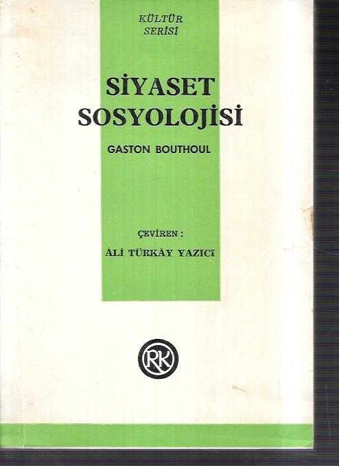 Siyaset sosyolojisi, Gaston Bouthoul tarafından kaleme alınmıştır. Kitap 1968 yılında Remzi Kitabevi Yay. tarafından [İstanbul] yayınlanmıştır. 142 sayfadır. Sayfa bilgisi 3. hamur olarak belirtilmiştir. Siyaset sosyolojisi adlı eser Türkçe dilindedir.