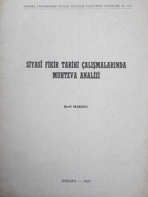 Siyasi Fikir Tarihi Çalışmalarında Muhteva Analizi, Şerif Mardin tarafından kaleme alınmıştır. Kitap 1969 yılında A.Ü. Siyasal Bilgiler Fakültesi tarafından [Ankara] yayınlanmıştır. 16 sayfadır. Sayfa bilgisi 16 s. olarak belirtilmiştir. Siyasi Fikir Tarihi Çalışmalarında Muhteva Analizi adlı eser Türkçe dilindedir.