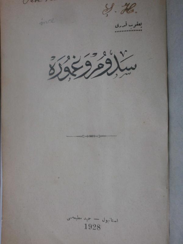Sodom ve Gomore, Yakup Kadri [Karaosmanoğlu] tarafından kaleme alınmıştır. Kitap 1928 yılında Hamid Matbaası tarafından [İstanbul] yayınlanmıştır. 346 sayfadır. Sodom ve Gomore adlı eser Osmanlıca dilindedir.
