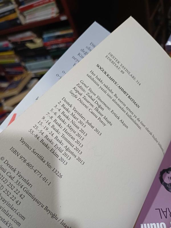 Soğuk Kahve, Ahmet Batman tarafından kaleme alınmıştır. Kitap 2013 yılında Destek Yayınları tarafından [İstanbul] yayınlanmıştır. 224 sayfadır. Soğuk Kahve adlı eser Türkçe dilindedir.