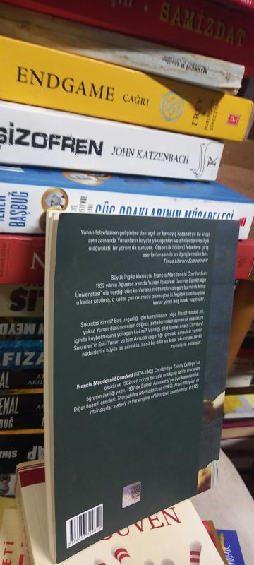 Büyük İngiliz klasikçisi Francis Macdonald Cornford'un 1932 yılının Ağustos ayında Yunan felsefesi üzerine Cambridge Üniversitesi'nde verdiği dört konferans metninden oluşan buminik kitap o kadar sevilmiş, o kadar çok okuyucu bulmuştur ki İngiltere'de bugüne kadar yirmibeş baskı yapmıştır. Sokrates kimdi? Batı uygarlığı için kamil insan, bilge filozof modeli mi, yoksa Yunan düşüncesinin doğacı temellerinden ayrılarak mistisizm içinde kaybolmasına yol açan kişi mi? Verdiği dört konferansta Cornford Sokrates'in Eski Yunan ve tüm Avrupa uygarlığı içindeki emsalsiz yerinin nedenlerini büyük bir açıklıkla, basit bir dille ve kısa, okunması zevkli metinlerle anlatıyor..