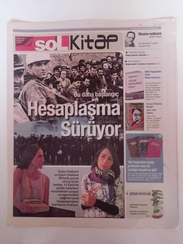 Sol Kitap Gazetesi - 13 Kasım 2013 - Sayı 59 - Özlem Delikanlı Ve Eylem Delikanlı Fotoğrafı - Bu Daha Başlangıç Hesaplaşma Sürüyor - Allah Peygamber Kitap - Hikmet Kıvılcımlı - Fransız Filozofu Kimdir - Jean Louis Fabiani - Grapon Kağıtları adlı eser, Kitap > Süreli Yayınlar > Gazeteler kategorisinde İkinci El olarak satıştadır.