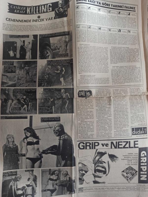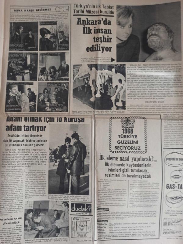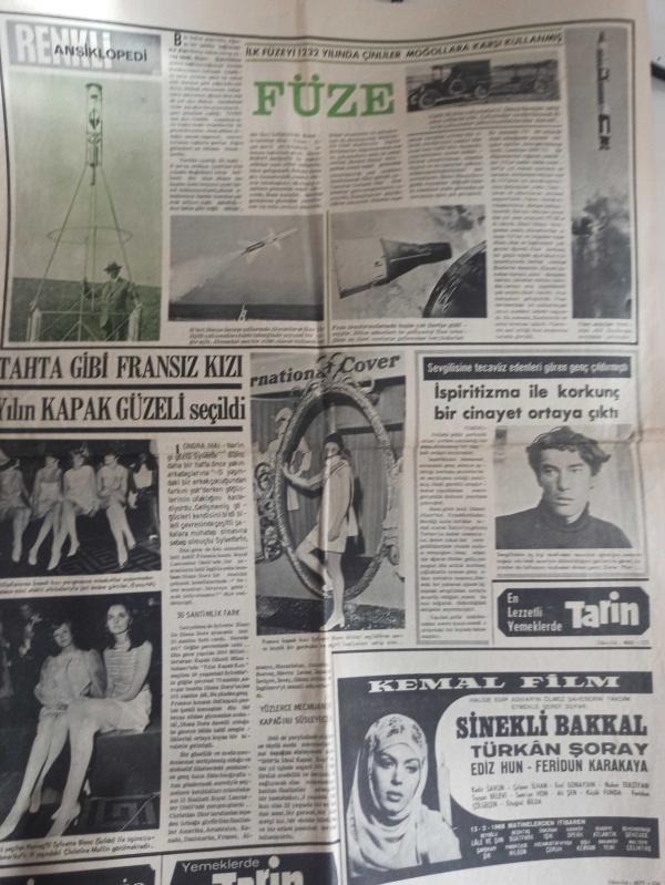 Son Aktüalite Gazetesi - 11 Şubat 1968 - Yirmi yaşında dul kalan anne elinden alacakları korkusuyla çocuğunu boğdu - Corina Çopey - ''Artık Atina'da bana ekmek yok'' diyen 1964 Dünya Güzeli Yunanlı Amerika'nın yolunu tuttu - Yedi kişiye mezar olan ölüm motoru bir yıldır Şile sahillerinde yatıyor - VEFA küme düşerse Amigo İbrahim son maçta tribünde kendisini asacak - İngiliz yazarı Stowers Johnson'a göre ''Türkler dünyanın en iyi insanları'' - Cehennemde inecek var fotoromanı - Emine Bacı'ya göre yarınki falınız - Aşka Karşı Gelinmez fotoromanı - Adam olmak için 10 kuruşa adam tartıyor - Türkiye'nin ilk Tabiat Tarihi Müzesi kuruldu - Ankara'da ilk insan teşhir ediliyor - Kız kardeşini kaçıranı çifte ile öldürdü - Renkli Ansiklopedi - Tahta gibi Fransız kızı yılın kapak güzeli seçildi - Sylvette Blanc - İspiritizma ile korkunç bir cinayet ortaya çıktı - Türkan Şoray fotoğraf ve haberi - Gazete tam değildir sadece 4 sayfası mevcuttur Yıpranma, sararmalar, kupon kesiği ve yırtılmalar zamana bağlı olarak görülebilir