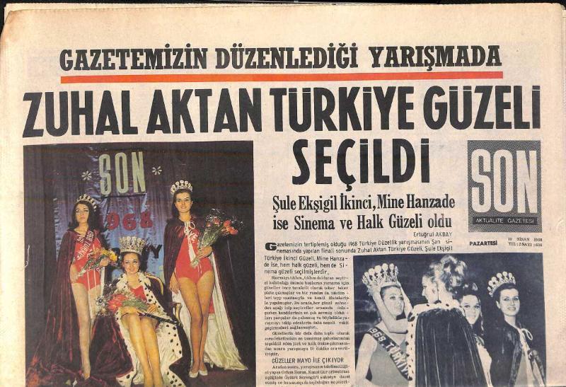 Son Aktüalite Gazetesi 15 Nisan 1968 - Zuhal Aktan Türkiye Güzeli Seçildi - Robert Kolejin Karnaval Gününde Her Hareket Serbest GZ156817, en son 20 gün önce güncellenmiştir.