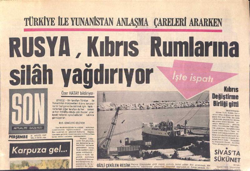 Son Aktüalite Gazetesi 21 Eylül 1967 - Rusya, Kıbrıs Rumlarına Silah Yağdırıyor - 1968 Çocuk Modası GZ156812, en son 19 gün önce güncellenmiştir.