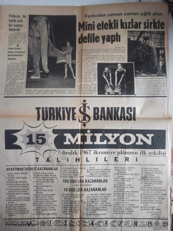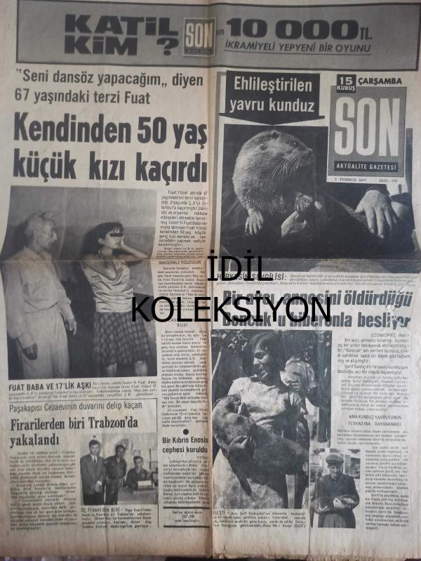 Son Aktüalite Gazetesi - 5 Temmuz 1967 - Sayı:376 - Fuat Yücel - Şerif Daldıçıklı - Bir Avcı, Annesini Öldürdüğü Boncuk'u Biberonla Besliyor haberi - Ahmet Alsu - Şerif Daldıçıktı - Generalin Hazinesi haberi - Emine Bacı - Dursun Salkım - Üçüncü Gözü ile Gören Adam hikayesi - Maurice Woodruff - Pierre Cardin Çocuklara da El Attı - Tokyo Ginza Deniz Yatağı Reklamı - Türkiye İş Bankası Reklamı - Çağla Kurtuluş - Mini Etekli Kızlar Sirkte Defile Yaptı fotoğraf ve haberi - Tam Takım Gazete Yıpranma, sararmalar, kupon kesiği ve yırtılmalar zamana bağlı olarak görülebilir