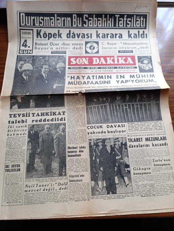 Son Dakika Gazetesi - 20 Ekim 1960 - Zeki Müren-Yassıada Duruşmalarında 4. Gün - Duruşmaların Bu Sabahki Tafsilatı - Köpek Davası Karara Kaldı - Bülent Üçer Suç Varsa Celal Bayar'a Aittir - Arif Hikmet Yamanoğlu Hayatımın En Mühim Müdafaasını Yapıyorum Dedi - 6 7 Eylül Olaylarına Ait Duruşmalara Yarından İtibaren Devam Edilecek - 6 7 Eylül Duruşmalarında Celal Bayar Adnan Menderes Fatin Rüştü Zorlu Fuat Köprülü Fotoğraf - Fahrettin Kerim Gökay'ın Konuşması - Fatin Rüştü Zorlu'nun Konuşması - Mucizeler Yaratan Adam Yazan Hikmet Saim Yazı Dizisi - Hayatımdaki Erkekler Marilyn Monroe Anlatıyor Yazı Dizisi - Dünyayı Titreten Türk Yavuz Sultan Selim Yazan Murat Sertoğlu Yazı Dizisi - Adnan Menderes Avukatıyla Cumartesi Görüşecek - Erkeksiz Kadınlar Yazı Dizisi - Fenerbahçe Bu Akşam Geliyor - A ve B Milli Takımlar Lağvedildi Kadrolar Yeni Baştan Seçilecek - Milli Güreşçimiz Mustafa Kurt Tevkif Edildi - Ankaragücünü Bu Sabah Sabri Kiraz Çalıştırdı adlı eser, Kitap > Süreli Yayınlar > Gazeteler > Türkiye > Genel > Günlük kategorisinde İkinci El olarak satıştadır.