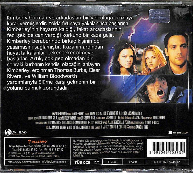 Son Durak 2 – Final Destination 2 (2003) Orijinal VCD Film VCD28050, en son 20 gün önce güncellenmiştir.