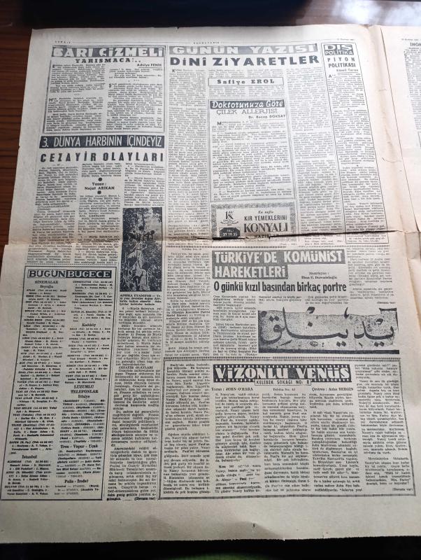 Son Havadis Gazetesi - 10 Haziran 1961 - Basın Ve CHP Yazan Gökhan Evliyaoğlu Köşe Yazısı - Cemal Madanoğlu İstifa Etti - İsmet İnönü'nün Akrabaları Kasım Gülek'i İstemiyor - Adalet Partisi İl Başkanlarını Toplantıya Çağırdı - Yassıada'da Ayşe Günel Dünkü Duruşmada Bayıldı - Kim Mecmuasının Bir Haberi Daha Asılsız Çıktı - Osman Bölükbaşı Mucur'a Gitti - İzmir Avukatları Hakim Abdullah Arı'yı İstiyor - 3. Dünya Harbinin İçindeyiz Yazan Nejat Arıkan Yazı Dizisi - Sarı Çizmeli Yazan Adviye Fenik - Türkiye'de Komünist Hareketleri Hazırlayan İlhan Darendelioğlu Yazı Dizisi - General Kasım'a Suikast Yapanlar Asılmayacak - Yassıada'da Perşembe Günü Yapılan Duruşma - Vatan Cephesi Davasında Sanıkların Müdafaaları - Basından Özetler - Bedava Ford Consul Otomobil - Necmi Mutlu Metin Oktay Ve Lefter Küçükandonyadis Hasta - Fenerbahçe B. Ahmet'i Transfer Etmek İstiyor - Vefa Kongresi 18 Haziran'da - Barselona Transfere Başladı - Vali Kupası Bugün Başlıyor - Arı Hafiye Çizen Harry Smith, M. Kemal Pekün tarafından kaleme alınmıştır. Son Havadis Gazetesi - 10 Haziran 1961 - Basın Ve CHP Yazan Gökhan Evliyaoğlu Köşe Yazısı - Cemal Madanoğlu İstifa Etti - İsmet İnönü'nün Akrabaları Kasım Gülek'i İstemiyor - Adalet Partisi İl Başkanlarını Toplantıya Çağırdı - Yassıada'da Ayşe Günel Dünkü Duruşmada Bayıldı - Kim Mecmuasının Bir Haberi Daha Asılsız Çıktı - Osman Bölükbaşı Mucur'a Gitti - İzmir Avukatları Hakim Abdullah Arı'yı İstiyor - 3. Dünya Harbinin İçindeyiz Yazan Nejat Arıkan Yazı Dizisi - Sarı Çizmeli Yazan Adviye Fenik - Türkiye'de Komünist Hareketleri Hazırlayan İlhan Darendelioğlu Yazı Dizisi - General Kasım'a Suikast Yapanlar Asılmayacak - Yassıada'da Perşembe Günü Yapılan Duruşma - Vatan Cephesi Davasında Sanıkların Müdafaaları - Basından Özetler - Bedava Ford Consul Otomobil - Necmi Mutlu Metin Oktay Ve Lefter Küçükandonyadis Hasta - Fenerbahçe B. Ahmet'i Transfer Etmek İstiyor - Vefa Kongresi 18 Haziran'da - Barselona Transfere Başladı - Vali Kupası Bugün Başlıyor - Arı Hafiye Çizen Harry Smith adlı eser Türkçe dilindedir.
