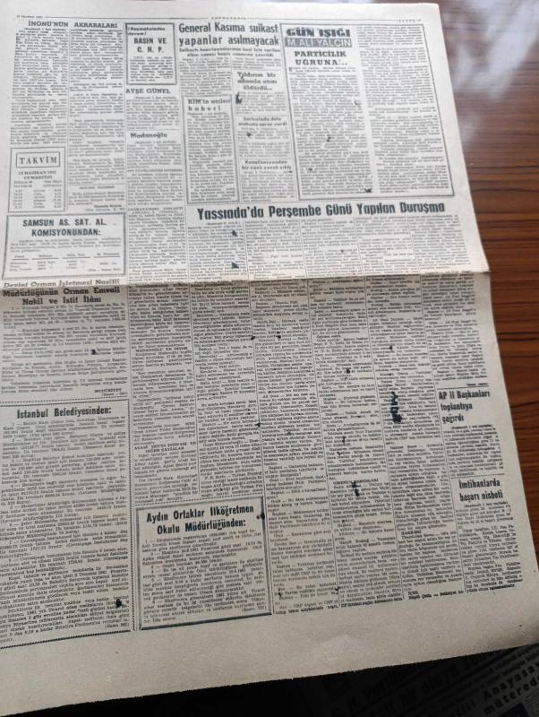 Son Havadis Gazetesi - 10 Haziran 1961 - Basın Ve CHP Yazan Gökhan Evliyaoğlu Köşe Yazısı - Cemal Madanoğlu İstifa Etti - İsmet İnönü'nün Akrabaları Kasım Gülek'i İstemiyor - Adalet Partisi İl Başkanlarını Toplantıya Çağırdı - Yassıada'da Ayşe Günel Dünkü Duruşmada Bayıldı - Kim Mecmuasının Bir Haberi Daha Asılsız Çıktı - Osman Bölükbaşı Mucur'a Gitti - İzmir Avukatları Hakim Abdullah Arı'yı İstiyor - 3. Dünya Harbinin İçindeyiz Yazan Nejat Arıkan Yazı Dizisi - Sarı Çizmeli Yazan Adviye Fenik - Türkiye'de Komünist Hareketleri Hazırlayan İlhan Darendelioğlu Yazı Dizisi - General Kasım'a Suikast Yapanlar Asılmayacak - Yassıada'da Perşembe Günü Yapılan Duruşma - Vatan Cephesi Davasında Sanıkların Müdafaaları - Basından Özetler - Bedava Ford Consul Otomobil - Necmi Mutlu Metin Oktay Ve Lefter Küçükandonyadis Hasta - Fenerbahçe B. Ahmet'i Transfer Etmek İstiyor - Vefa Kongresi 18 Haziran'da - Barselona Transfere Başladı - Vali Kupası Bugün Başlıyor - Arı Hafiye Çizen Harry Smith adlı eser, Kitap > Süreli Yayınlar > Gazeteler > Türkiye > Genel > Günlük kategorisinde İkinci El olarak satıştadır.