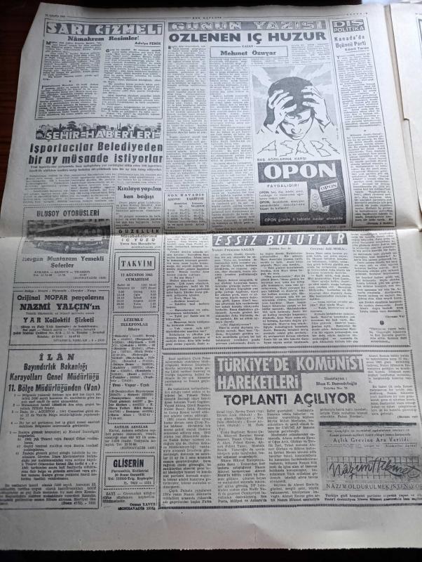 Son Havadis Gazetesi - 12 Ağustos 1961 - Yassıada'da Müdafaalar Da Bitti - Pazartesi Günü Kararların Tefhim Günü Açıklanacak - Osman Köksal Muhafız Alayı Kumandanlığı Görevinden Alındı - Ali Fuat Başgil Dün Beraat Etti - Gazetemizin Yuvarlak Masa Teklifi Büyük İlgi Topladı - Adalet Partisi Seçim Hazırlığına Başladı - Işık Lisesinde 70 Öğrenci Sebepsiz Okuldan Çıkarıldı - Selim Sarper Rus Büyükelçisi İle Görüştü - Namahrem Resimler Yazan Adviye Fenik - Eşsiz Bulutlar Yazan Françoise Sagan Yazı Dizisi - Türkiye'de Komünist Hareketleri Hazırlayan İlhan Darendelioğlu Yazı Dizisi - Bozkurtların Ölümü Yazan Nihal Atsız - Bulvar Tiyatrosu Münir Özkul Yaz Temsilleri - Can Bartu Lazio İle 770 Bin Liraya Anlaştı - Palermolular Transfer Olan Metin Oktay'ın İlk Maçı Yarın - Cezmi Or Kupası Bugün Başlıyor - Ecnebi Hakem Deplasman Şartı İle Getirilecek - Lefter Küçükandonyadis Avustralya'dan Çağrıldı, M. Kemal Pekün tarafından kaleme alınmıştır. Son Havadis Gazetesi - 12 Ağustos 1961 - Yassıada'da Müdafaalar Da Bitti - Pazartesi Günü Kararların Tefhim Günü Açıklanacak - Osman Köksal Muhafız Alayı Kumandanlığı Görevinden Alındı - Ali Fuat Başgil Dün Beraat Etti - Gazetemizin Yuvarlak Masa Teklifi Büyük İlgi Topladı - Adalet Partisi Seçim Hazırlığına Başladı - Işık Lisesinde 70 Öğrenci Sebepsiz Okuldan Çıkarıldı - Selim Sarper Rus Büyükelçisi İle Görüştü - Namahrem Resimler Yazan Adviye Fenik - Eşsiz Bulutlar Yazan Françoise Sagan Yazı Dizisi - Türkiye'de Komünist Hareketleri Hazırlayan İlhan Darendelioğlu Yazı Dizisi - Bozkurtların Ölümü Yazan Nihal Atsız - Bulvar Tiyatrosu Münir Özkul Yaz Temsilleri - Can Bartu Lazio İle 770 Bin Liraya Anlaştı - Palermolular Transfer Olan Metin Oktay'ın İlk Maçı Yarın - Cezmi Or Kupası Bugün Başlıyor - Ecnebi Hakem Deplasman Şartı İle Getirilecek - Lefter Küçükandonyadis Avustralya'dan Çağrıldı adlı eser Türkçe dilindedir.