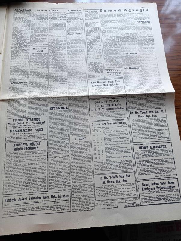 Son Havadis Gazetesi - 12 Ağustos 1961 - Yassıada'da Müdafaalar Da Bitti - Pazartesi Günü Kararların Tefhim Günü Açıklanacak - Osman Köksal Muhafız Alayı Kumandanlığı Görevinden Alındı - Ali Fuat Başgil Dün Beraat Etti - Gazetemizin Yuvarlak Masa Teklifi Büyük İlgi Topladı - Adalet Partisi Seçim Hazırlığına Başladı - Işık Lisesinde 70 Öğrenci Sebepsiz Okuldan Çıkarıldı - Selim Sarper Rus Büyükelçisi İle Görüştü - Namahrem Resimler Yazan Adviye Fenik - Eşsiz Bulutlar Yazan Françoise Sagan Yazı Dizisi - Türkiye'de Komünist Hareketleri Hazırlayan İlhan Darendelioğlu Yazı Dizisi - Bozkurtların Ölümü Yazan Nihal Atsız - Bulvar Tiyatrosu Münir Özkul Yaz Temsilleri - Can Bartu Lazio İle 770 Bin Liraya Anlaştı - Palermolular Transfer Olan Metin Oktay'ın İlk Maçı Yarın - Cezmi Or Kupası Bugün Başlıyor - Ecnebi Hakem Deplasman Şartı İle Getirilecek - Lefter Küçükandonyadis Avustralya'dan Çağrıldı adlı eser, Kitap > Süreli Yayınlar > Gazeteler > Türkiye > Genel > Günlük kategorisinde İkinci El olarak satıştadır.