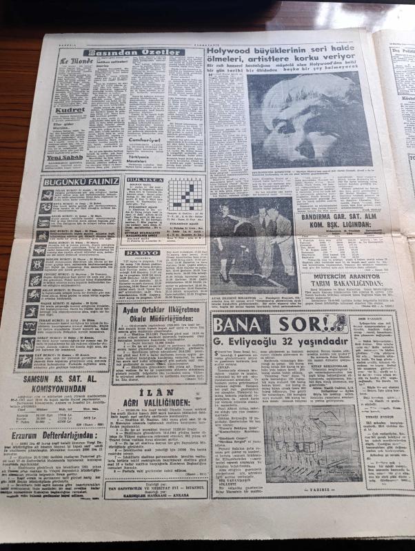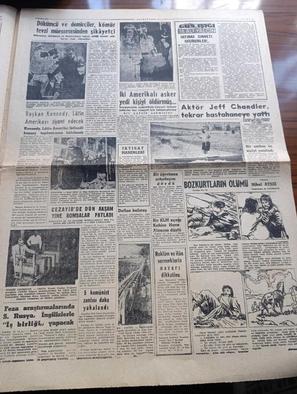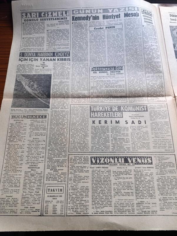 Son Havadis Gazetesi - 13 Haziran 1961 - İhtilal Hukuk Devletini Kurmak İçin Yapılmıştır - Halk Partisi Ve Hürriyet Yazan Peyami Safa Köşe Yazısı - Adnan Menderes'in Avukatı Burhan Apaydın Mahkum Oldu - Cemal Gürsel Seçim Erken Olmalı Diyor - İsmet İnönü Vecizelerinin Sigaralara Nasıl Girdiği Açıklanmadı - Yassıada'da Sanıklar Dikta İddialarını Reddetti - 3. Dünya Harbinin İçindeyiz Yazan Nejat Arıkan Yazı Dizisi - Kennedy'nin Hürriyet Mesajı Yazan Cevdet Perin - Türkiye Komünist Hareketleri Hazırlayan İlhan Darendelioğlu Yazı Dizisi - Amerikan Başkanı Kennedy Latin Amerikayı Ziyaret Edecek - Aktör Jeff Chandler Tekrar Hastaneye Yattı - Bozkurtların Ölümü Yazan Nihal Atsız - Marilyn Monroe'nun Annesi Deli Olarak Ölmüştü - Bugünkü Burç Falınız - Suat Mamat Milli Takımda Oynamak İstiyorum Dedi - Vali Kupası Bu Hafta Altı Maç İle Bitiyor - Puppo Sandro Milli Takımın İstirahate İhtiyacı Var Dedi - Kasımpaşa Takımında Mehmet Gür İstenmiyor - Arı Hafiye Çizen Harry Smith - Emirgan Kampı adlı eser, Kitap > Süreli Yayınlar > Gazeteler > Türkiye > Genel > Günlük kategorisinde İkinci El olarak satıştadır.