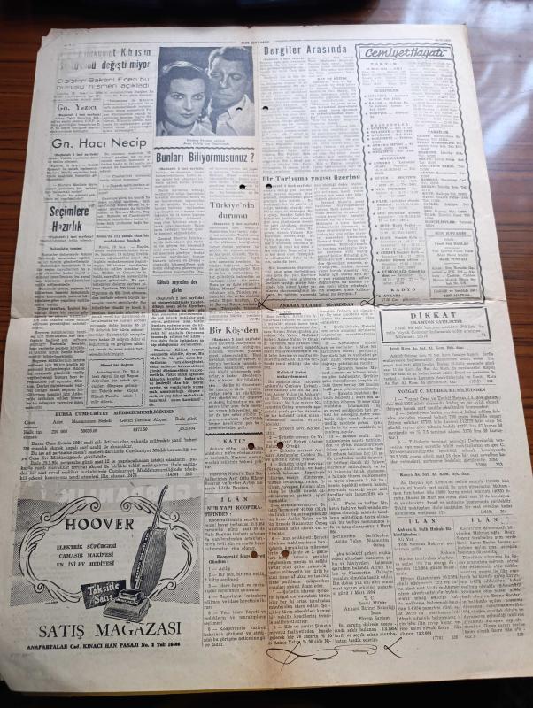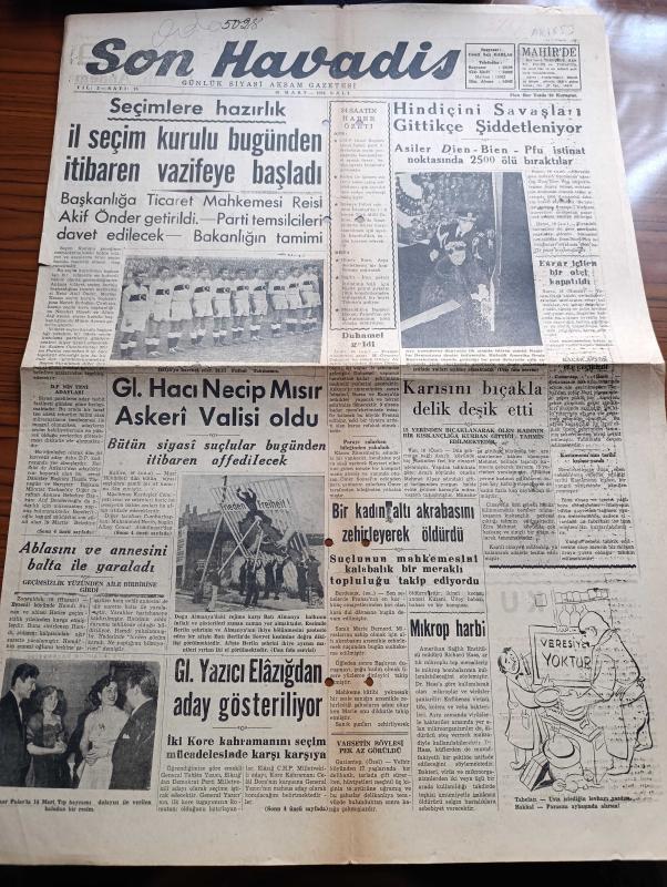 Son Havadis Gazetesi - 16 Mart 1954 - Seçimlere Hazırlık İl Seçim Kurulu Bugünden İtibaren Vazifeye Başladı - General Hacı Necip Mısır Askeri Valisi Oldu - Hindiçini Savaşları Gittikçe Şiddetleniyor - Esrar İçilen Bir Otel Kapatıldı - Karısını Bıçakla Delik Deşik Etti - General Tahsin Yazıcı Elazığ'dan Aday Gösteriliyor - Bir Kadın Altı Akrabasını Zehirleyerek Öldürdü - Ava Gardner Değil Mi Bu Fotoğraf - Kuzey Yıldızı Yazan Ailenin Yazı Dizisi - Hikaye Zavallı Annem Yazan Andre Maurois - Dünyanın En Büyük Soygunculuk Olayı Çeviren Seyfettin Turhan - Sanat Ve Edebiyat Köşesi - Dergiler Arasında Yazan İlhami Soysal - Bozacı'nın Kızı'na Şiir Yazan Sabri Soran - Zümrüt Gerdanlık Yazan Jacques Decrest Yazı Dizisi - Meşhur Fransız Aktör Jean Gabin Son Filminde - Hoover Elektrik Süpürgesi - Cemiyet Hayatı adlı eser, Kitap > Süreli Yayınlar > Gazeteler > Türkiye > Genel > Günlük kategorisinde İkinci El olarak satıştadır.