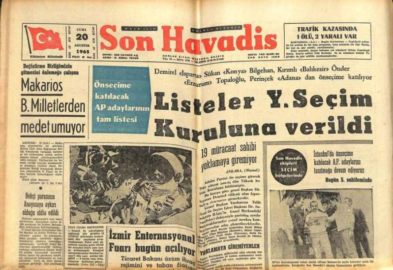 Son Havadis Gazetesi 20 Ağustos 1965 - Madanoğlu Müstakil Aday Kaydını Yaptırdı GZ102281, en son 20 gün önce güncellenmiştir.