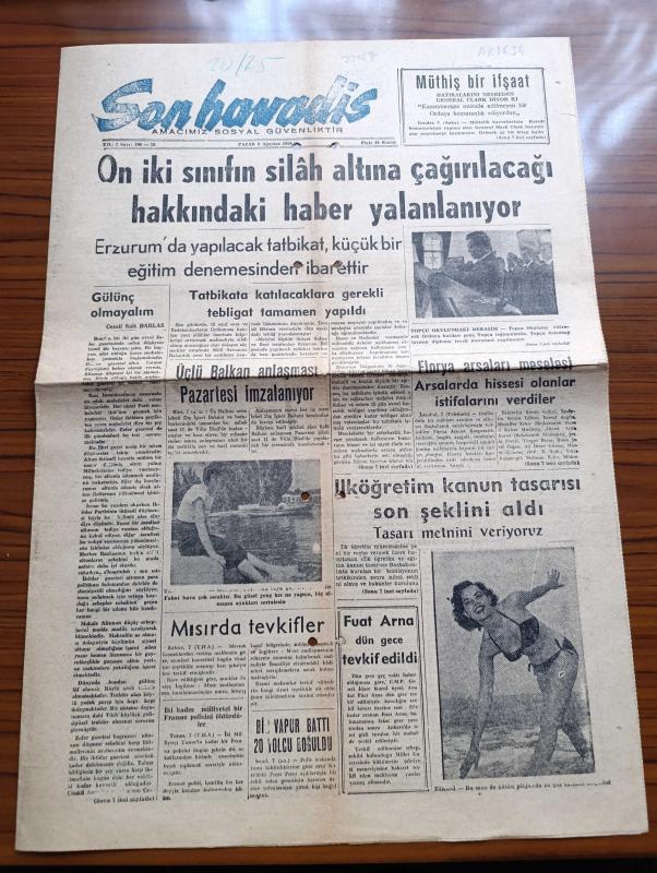 Son Havadis Gazetesi - 8 Ağustos 1954 - Gülünç Olmayalım Yazan Cemil Sait Barlas Köşe Yazısı - On İki Sınıfın Silah Altına Çağırılacağı Hakkındaki Haber Yalanlanıyor - Üçlü Balkan Anlaşmasının Pazartesi İmzalanıyor - Bikini Bu Dene Plajların Modası - Fuat Arna Dün Gece Tevkif Edildi - Florya Arsaları Meselesi Arsalarda Hissediyorum İlanlar İstifalarını Verdiler - İki Kadın Milliyetçi Fransız Polisin Öldürdüler - İngiliz Milletvekillerinin Vaziyeti Yazanlar John H. Mac Callum Scott - New York'la Paris Arasında Otomobil Yarışı - Zenciler Birbirine Benzemez Yazan Attila İlhan Yazı Dizisi - İslam Aleyhinde Kitap Yazan Yazar Jorj Şukyr - Zemzem Suyu Çıkarmaktadır İçin Mekke'de Artezyen Kuyuları Açıldı - Hikaye Karanlıkta Yazan A. Rıza Yalt - Demir Perdesi Yıkılıyor Yazan Pat Frank Yazı Dizisi - Profesyonel Bir Dolandırıcının Hikayesi Yazı Dizisi - Safiye Ayla Bomonti Çay Bahçesinde adlı eser, Kitap > Süreli Yayınlar > Gazeteler > Türkiye > Genel > Günlük kategorisinde İkinci El olarak satıştadır.