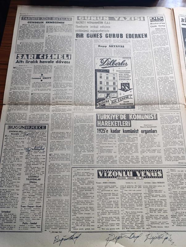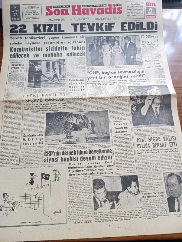 Son Havadis Gazetesi - 8 Haziran 1961 - 22 Kızıl Tevkif Edildi - Yeraltı Faaliyetleri Yapan Komünist Bir Şebeke Meydana Çıkarıldığı Açıklandı - Cemal Gürsel Komünistlerin Tevkifi Hakkında Ne Diyor - Vatan Cephesi Davasında Müdafaa Başladı - Yeni Partiler Seçime Girecek - CHP'nin Dernek İdare Heyetlerine Siyasi Baskı Devam Ediyor - Gazeteciler Adına Milli Türk Talebe Birliğine Cevap Verildi - Yassıada Film Geliri Din Eğitimine Ayrıldı - Tarihte Adli Hatalar Yazan Leonard Knott Yazı Dizisi - Hazreti Muhammed'in Ebediyete İntikal Edişinin Yıldönümü Münasebetiyle Bir Güneş Gurub Ederken Yazan Ragıp Akyavaş - Türkiye'de Komünist Hareketleri Hazırlayan İlhan Darendelioğlu Yazı Dizisi - Bozkurtların Ölümü Yazan Nihal Atsız - 3. Dünya Harbinin İçindeyiz - Bir Film veya Artisti Meşhur Etmek İçin Ajanların Buluşları - Dünya Güreş Şampiyonasında 5. Gün - Moskova Dönüşü Ahmet Berman Galatasaray'dan 100 Bin Lira İsteyecek - Metin Oktay Ve Can Bartu İçin Resmi Bir Yazı Gelmedi - Arı Hafiye adlı eser, Kitap > Süreli Yayınlar > Gazeteler > Türkiye > Genel > Günlük kategorisinde İkinci El olarak satıştadır.
