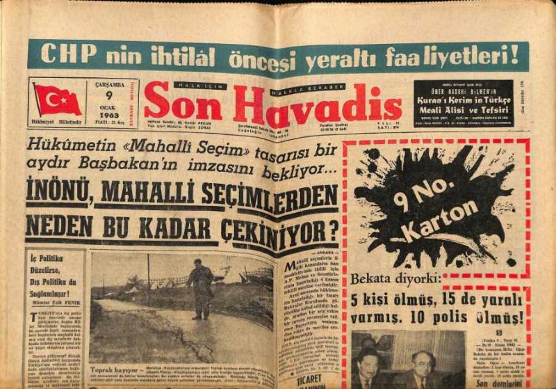 Son Havadis Gazetesi 9 Ocak 1963 - Orhan İlter Gizli Teşkilat Kuruyor GZ74150, en son 19 gün önce güncellenmiştir.