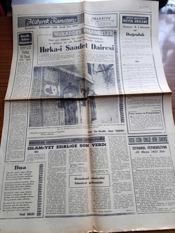 Son Havadis Gazetesi Kupürü - 10 Ocak 1966 - Mübarek Ramazan Yazanlar Selahattin Şar ve Yusuf Ziya İnan - Büyük İslam Bilginleri Hammer'e Işık Tutan Bilgin Tarihçi Ali Efendi 1541 1600 - Mukaddes Emanetler Hırka-i Saadet Dairesi - Peygamberimizin Kutsal Hatıra Ve Eşyalarının Bulunduğu Özel Dairenin Kapısı Görülüyor Foto İsmet Taşkurt - Hazreti Muhammed'in Büyük Sözleri Derleyen M. Ş. Alaybeyoğlu Yazı Dizisi - Fani İnsan Ve Peygamber - Hristiyan Propagandacıları Ve Cevaplarımız Yazı Dizisi - İslamiyet Esirliğe Son Verdi - Her Gün Ünlü Bir Savaş - İstanbul Fethediliyor 29 Mayıs 1453 Salı - Ritm Ve Melodi Yazan Rauf Tamer - Dostluk Üzerine Kurulan Orkestra Yavuz Özışık Ve Arkadaşları Uğurtan Günal ve Güngör Uyguner Fotoğraf - Napoli Asıllı Amortisör Angelo Hem Ahçı Hem Şarkıcı - Her Şeyin Bir Can Noktası Hazırlayan Dr. Cavit Göncer - İstanbul'da Sinema Tiyatro Programı - Duyduklarımız Gördüklerimiz - Bulmaca - Otelde Hortlak Var Çizgi Roman - İstanbul Ankara İzmir Adana Radyosu Programı adlı eser, Kitap > Süreli Yayınlar > Gazeteler > Türkiye > Genel > Günlük kategorisinde İkinci El olarak satıştadır.