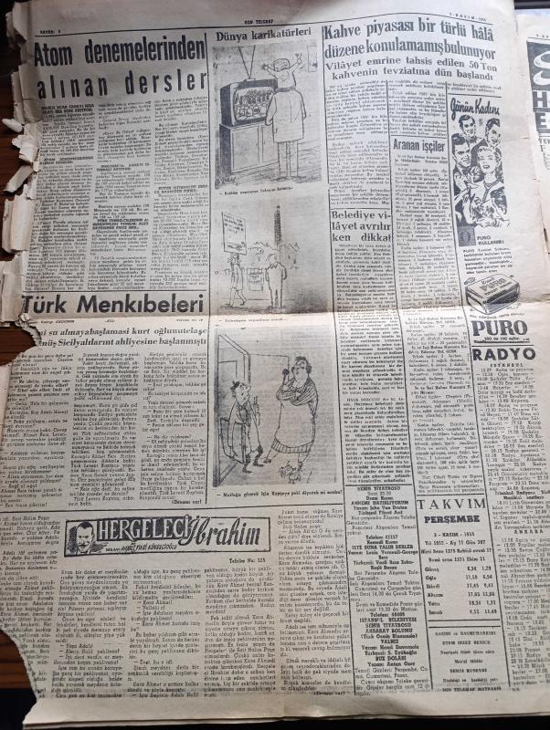 Son Telgraf Gazetesi - 3 Kasım 1955 - Muş'a İlk Giren Tren Ve Doğu Yazan Etem Izzet Benice Köşe Yazısı - Ürdün'e Gitmekte Olan Celal Bayar İskenderun'da - Misafir Alman Heyeti Şerefine Tatbikat Yapıldı - Belediye Seçimleri İçin Propagandaya İzin Verildi - Başvekil Adnan Menderes İstanbul'a Geldi - Ankara Üniversitesi Dün Tedrisata Başladı - On Bin Otomobil Lastiği Yeniden Tevzi Edilecek - 19'lar Yeni Bir Parti Kurmak Fikrinde - İki Profesör Tahir Taner Ve Muammer Raşit Sevig Emekliye Ayrıldı - Abbasiler Yazan Y.O. Yazı Dizisi - Gümrüklerdeki Filmler Hala Niye Dağıtılmadı - Kraliçe Süreyya Bütün Paris'in Kalbini Fethetti - Kankusan Gelin Yazan A. Vedad Akın Yazı Dizisi - Hergeleci İbrahim Yazan Ahmet Fikri Kündecioğlu Yazı Dizisi - Havagücü Egespor Maçı - Sunderland Dynamo İle Karşılaşacak - Adalet Vefa İle Berabere Kaldı - Kabataş Lisesi Beyoğlu Ticareti 1 0 Mağlup Etti - Fenerbahçe Stadında Karşılaşan Galatasaray Ve Kuleli Berabere Kaldı - Okullararası Voleybol Maçları Başladı, Etem Izzet Benice tarafından kaleme alınmıştır. Son Telgraf Gazetesi - 3 Kasım 1955 - Muş'a İlk Giren Tren Ve Doğu Yazan Etem Izzet Benice Köşe Yazısı - Ürdün'e Gitmekte Olan Celal Bayar İskenderun'da - Misafir Alman Heyeti Şerefine Tatbikat Yapıldı - Belediye Seçimleri İçin Propagandaya İzin Verildi - Başvekil Adnan Menderes İstanbul'a Geldi - Ankara Üniversitesi Dün Tedrisata Başladı - On Bin Otomobil Lastiği Yeniden Tevzi Edilecek - 19'lar Yeni Bir Parti Kurmak Fikrinde - İki Profesör Tahir Taner Ve Muammer Raşit Sevig Emekliye Ayrıldı - Abbasiler Yazan Y.O. Yazı Dizisi - Gümrüklerdeki Filmler Hala Niye Dağıtılmadı - Kraliçe Süreyya Bütün Paris'in Kalbini Fethetti - Kankusan Gelin Yazan A. Vedad Akın Yazı Dizisi - Hergeleci İbrahim Yazan Ahmet Fikri Kündecioğlu Yazı Dizisi - Havagücü Egespor Maçı - Sunderland Dynamo İle Karşılaşacak - Adalet Vefa İle Berabere Kaldı - Kabataş Lisesi Beyoğlu Ticareti 1 0 Mağlup Etti - Fenerbahçe Stadında Karşılaşan Galatasaray Ve Kuleli Berabere Kaldı - Okullararası Voleybol Maçları Başladı adlı eser Türkçe dilindedir.