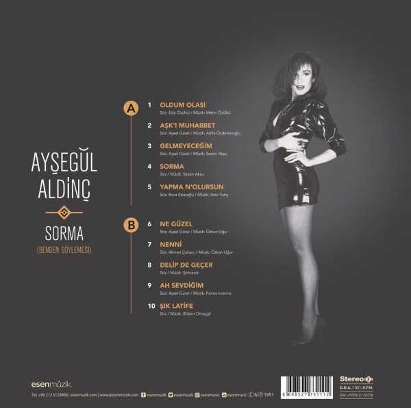 Sorma (Benden Söylemesi) Ayşegül Aldinç - Esen Müzik 2018 kullanılmamış yeni plak / LP, orijinal jelatinindedir plaklar özenle paketlenir ve plak için uygun kutularda kargolanır kargolama pazartesi, çarşamba ve cuma günleridir Plak İçeriği A1 Oldum Olası A2 Aşk-ı Muhabbet A3 Gelmeyeceğim A4 Sorma A5 Yapma N'Olursun B1 Ne Güzel B2 Nenni B3 Delip De Geçer B4 Ah Sevdiğim B5 Şık Latife