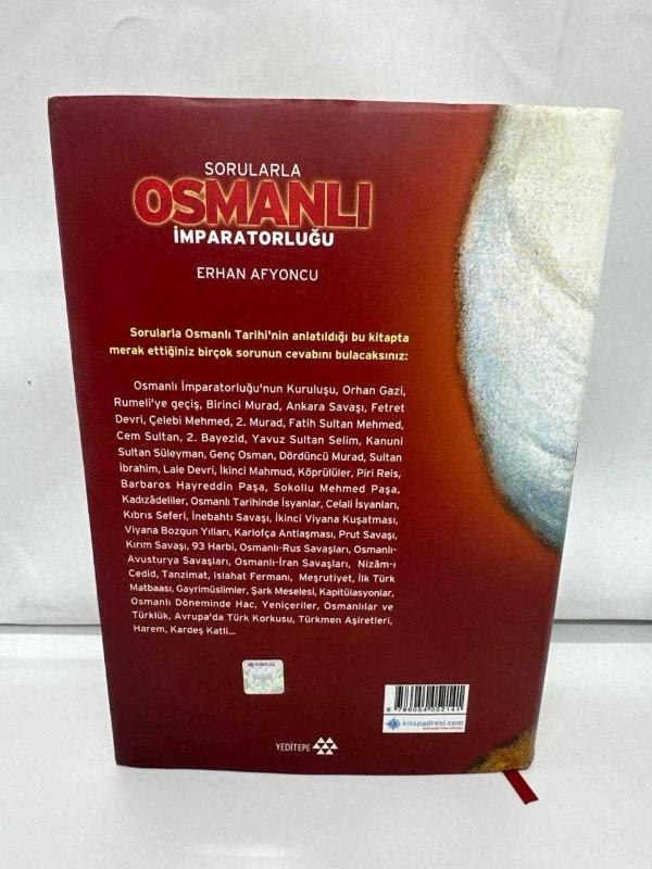 Sorularla Osmanlı Tarihi'nin anlatıldığı bu kitapta merak ettiğiniz birçok sorunun cevabını bulacaksınız: Osmanlı İmparatorluğu'nun Kuruluşu, Orhan Gazi, Rumeli'ye geçiş, Birinci Murad, Ankara Savaşı, Fetret Devri, Çelebi Mehmed, 2. Murad, Fatih Sultan Mehmed, Cem Sultan, 2. Bayezid, Yavuz Sultan Selim, Kanuni Sultan Süleyman, Genç Osman, Dördüncü Murad, Sultan İbrahim, Lale Devri, İkinci Mahmud, Köprülüler, Piri Reis, Barbaros Hayreddin Paşa, Sokollu Mehmed Paşa, Kadızâdeliler, Osmanlı Tarihinde İsyanlar, Celali İsyanları, Kıbrıs Seferi, İnebahtı Savaşı, İkinci Viyana Kuşatması, Viyana Bozgun Yılları, Karlofça Antlaşması, Prut Savaşı, Kırım Savaşı, 93 Harbi, Osmanlı-Rus Savaşları, Osmanlı-Avusturya Savaşları, Osmanlı-İran Savaşları, Nizâm-ı Cedid, Tanzimat, Islahat Fermanı, Meşrutiyet, İlk Türk Matbaası, Gayrimüslimler, Şark Meselesi, Kapitülasyonlar, Osmanlı Döneminde Hac, Yeniçeriler, Osmanlılar ve Türklük, Avrupa'da Türk Korkusu, Türkmen Aşiretleri, Harem, Kardeş Katli...