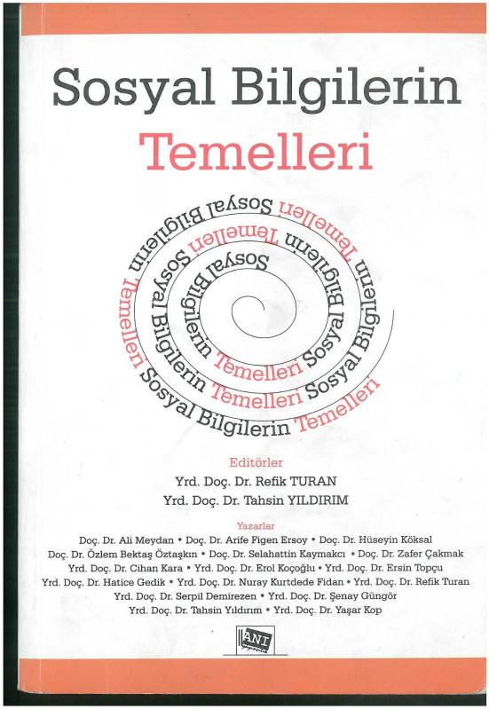 Sosyal Bilgilerin Temelleri, Ed.: Refik Turan, Tahsin Yıldırım tarafından kaleme alınmıştır. Kitap 2016 yılında Anı tarafından [Ankara] 9786051702971 ISBN kodu ile yayınlanmıştır. 408 sayfadır. Sosyal Bilgilerin Temelleri adlı eser Türkçe dilindedir.