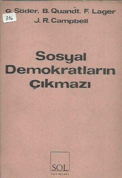 Sosyal Demokratların Çıkmazı, Söder, Quandt, Lager, Campbell tarafından kaleme alınmıştır. Kitap 1966 yılında Sol Yayınları tarafından [ANKARA] yayınlanmıştır. Bu baskının çevirisi Kenan Somer tarafından yapılmıştır. 92 sayfadır. Sosyal Demokratların Çıkmazı adlı eser Türkçe dilindedir.