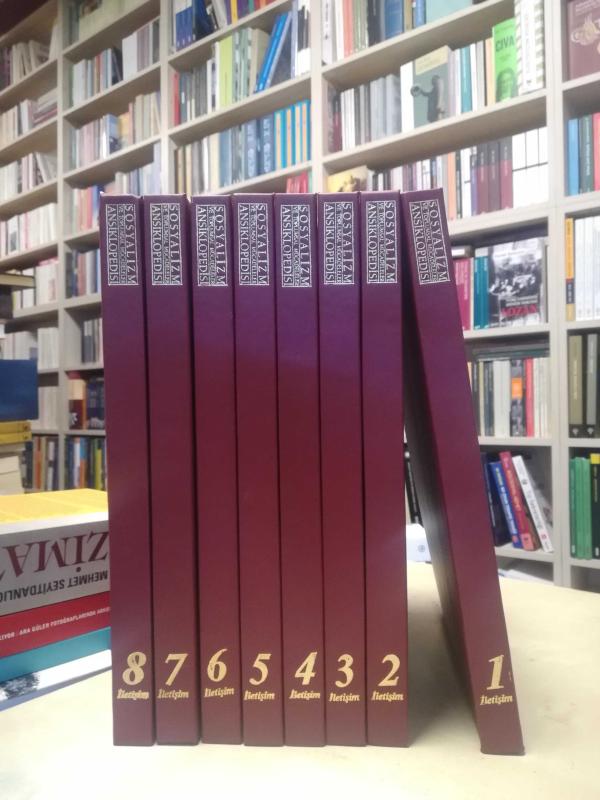 Yayıncısının orijinal bez cildinde; s/b ve renkli görselli. "Sosyalizm ve Toplumsal Mücadeleler Ansiklopedisi, İletişim Yayınları tarafından 1988 yılında Türkçe olarak basılan, sosyalizm konulu tarihi bilgilerin yer aldığı ansiklopedidir. Yayın yönetmenliğini Ertuğrul Kürkçü yapmıştır. Yazarları arasında Orhan Koçak, Ulus Baker, Tanıl Bora, Teslim Töre gibi isimler yer almaktadır. Sekiz cilt olan ansiklopedi şu içeriklerden oluşmaktadır; 1. Cilt: Modern sosyalizmin doğuşu 2. Cilt: Paris Komünü 3. Cilt: Tek ülkede sosyalizm 4. Cilt: İngiliz Emperyalizminin Çözülüşü 5. Cilt: Küba Devrimi 6. Cilt: Osmanlı Devletinde Toplumsal Mücadeleler 7. Cilt: Türkiye'de 1968 8. Cilt: Medeniyet ve Devletin Doğuşu."