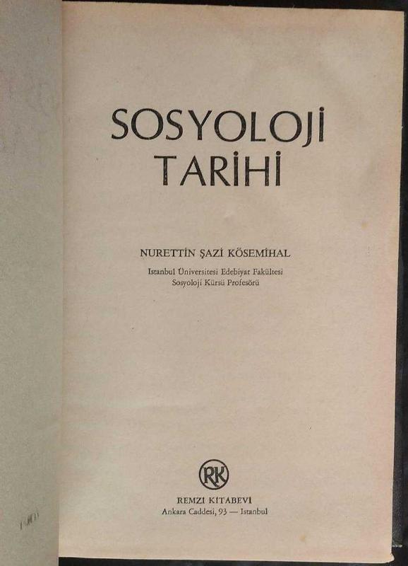 Sosyoloji Tarihi, Nurettin Şazi Kösemihal tarafından kaleme alınmıştır. Kitap 1974 yılında Remzi Kitabevi tarafından yayınlanmıştır. 351 sayfadır. Sosyoloji Tarihi adlı eser Türkçe dilindedir.