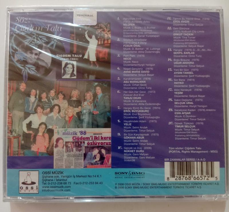 Söz : ÇİĞDEM TALU - Nilüfer * Füsun Önal * Asu Maralman * Anne Maria David * Tanju Okan * Yeliz * Erol Evgin * Nükhet Duru * Hayko * Neco * Esin Avşar * Timur Selçuk * Serpil Barlas ~ { CD } başlıklı ürün, Efemera, Müzik, Sinema > Müzik, Plak, Kaset, CD > Müzik CD'si > Yerli Müzik CD kategorisi altında Yeni olarak satılmaktadır.