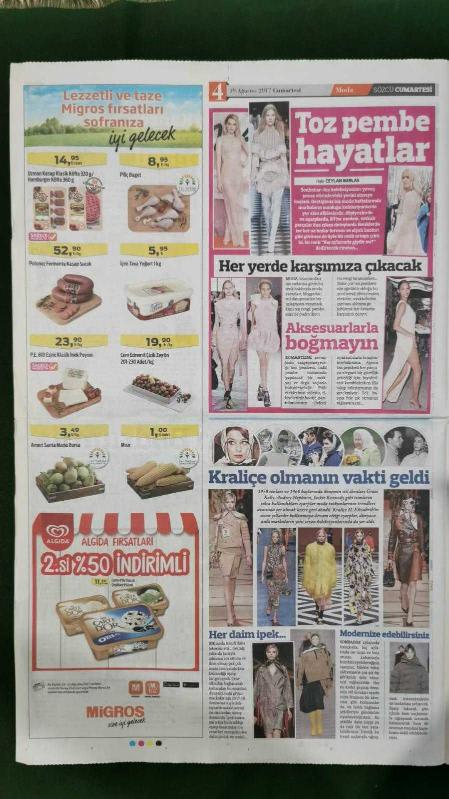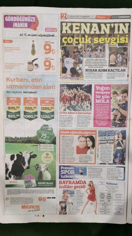 Kitap 2017 yılında yayınlanmıştır. 12 sayfadır. Sözcü Cumartesi Gazete 19 Ağustos 2017 Yasak Aşk Yuva Yıktı,Burcu Başoğlu Kabadayı,Murat Başoğlu,Hande Bermek,Selçuk Başoğlu,Merve Boluğur,Murat Dalkılıç,Ahmet Arıman,Kader Kaynak,Sevinç Meşe,Kenan İmirzalıoğlu,Suzan Tektaş,Eda Erol,Alişan,Gülşe,Şevket Çoruh,Beren Saat,Kenan Doğulu,Gülben Ergen,Ozan Doğulu,Berkay,Ayşe Hatun Önal,Soner Olgun,Funda Arar,Prof.Dr.Osman Erk,Ayşe Gül Güven,Hale Ceylan Barlas,Grace Kelly,Audrey Hepburn,Jackie Kennedy,Mis Kokan Evlerde Bayram Coşkusu Bir Başka,Detaylı Planlamayla Yorulmaktan Kurtulun,Nef Ayrıcalıkları Bodrum'da,Sevdiklerinizi Çiçeklerle Karşılayın,Caner Cindoruk,Özge Özpirinççi,Migros Market Reklamı,Garanti Bonus Reklamı,Fairy Reklam,Porçöz Reklam adlı eser Türkçe dilindedir.