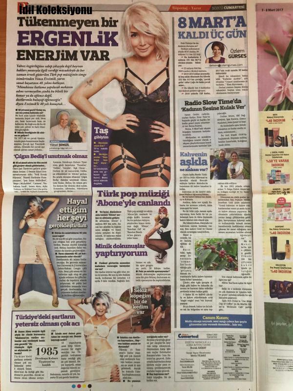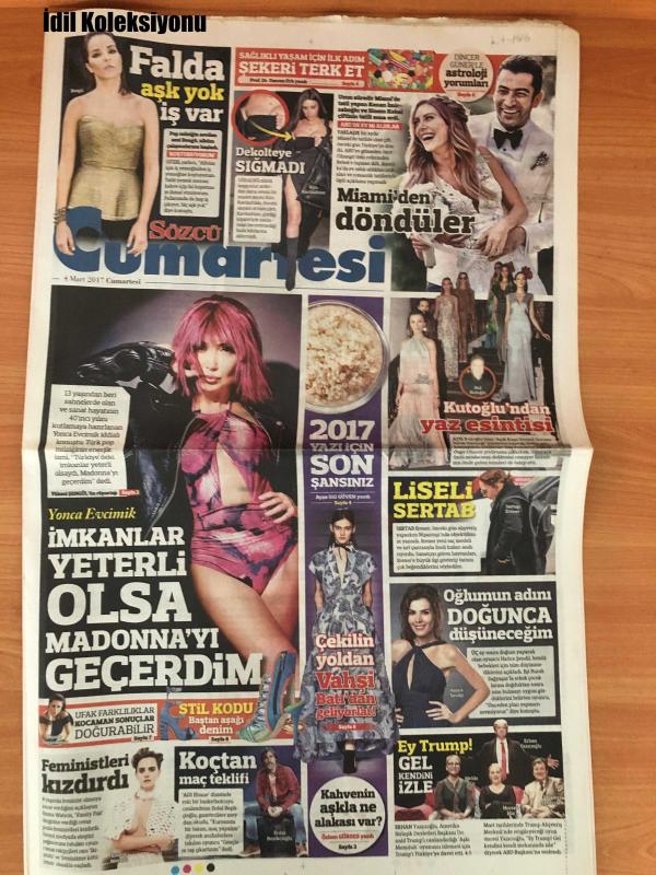 Sözcü Cumartesi Gazetesi, 11 Mart 2017, Yonca Evcimik, Erdal Beşikçioğlu, Emma Watson, Kim Kardashian, Sinem Kobal, Kanan Indr, Burak Sağyaşar, Hatice Şendil, Melda Gür, Dincer Guner, Ayşe Gül Güven, Özlem Gürses, Atıl Kutoğlu, Sertab Erener, Erhan Yazıcıoğlu, Özlem Gürses, Falda Aşk Yok İş Var, Sağlıklı Yaşam İçin İlk Adım: Şekeri Terk Et, Dekolteye Sigmadı, ABD'de Ev Aldılar, İmkânlar Yeterli Olursa Madonna'yı Geçerdim, Ufacık Farklılıklar Kocaman Sonuçlar Doğurabilir, Feministleri Kızdırdı, Stilden Podyuma, Oğlumun Adını Doğunca Düşüneceğim, Ey Trump! Gel Kendini İzle, Kahvenin Aşkla Ne Alakası Var, Kutoğlu'ndan Yaz Esintisi, Cekilin Yoldan Vahşi Batı'dan Geliyorlar adlı eser Türkçe dilindedir.