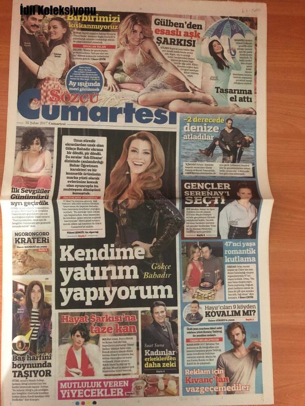 Sözcü Cumartesi Gazetesi, 18 Şubat 2017, Burak Özçivit, Fahriye Evcen, Gülben Ergen, Demet Ozdemir, Ay Işığında Mavi Gözükmek, Burak Yamanturk, Hande Dogandemir, Ngorongoro Krateri, Melisa Sozen, Hande Subaşı, Suat Suna, Gizem Karaca, Serenay Sarıkaya, Serdar Ortac, Chloe Loughnan, Irfan Degirmenc, Özlem Gürses, Kıvanç Tatlıtuğ, Kerem Bursin, Ülker Kaleli, İt-1400, Gülben'den Esaslı Aşk Şarkısı, Tasarıma El Attı, Ay Işığında Mavi Gözükmek, İlk Sevgililer Günümüzü Ayrı Geçirdik, Ngorongoro Krateri, Kendime Yatırım Yapıyorum, Hayat Şarkısı'na Taze Kan, 'İçimdeki Fırtına' Dizisinin Başarılı Oyuncuları, Gençler Serenay'ı Seçti, 47'nci Yaşa Romantik Kutlama, Hayır'cıları 9 Köyden Kovalım Mı?, Reklam İçin Kıvanç'tan Vazgeçemediler, Erdal Bakkal Fena Yakalandı, Leyla ile Mecnun'un, Bozkurt Tuğba Yurt'un AŞK ACISI, Sevgililer, Anne Kız El Ele Alışverişte, Ekranın Yeni Dizisi 'Adı Efsane'de, Amaç: Kaliteyle Fark Yaratmak, Dans ve Şarkı Vazgeçilmezim, Kadınlar Çok Yetenekli adlı eser Türkçe dilindedir.