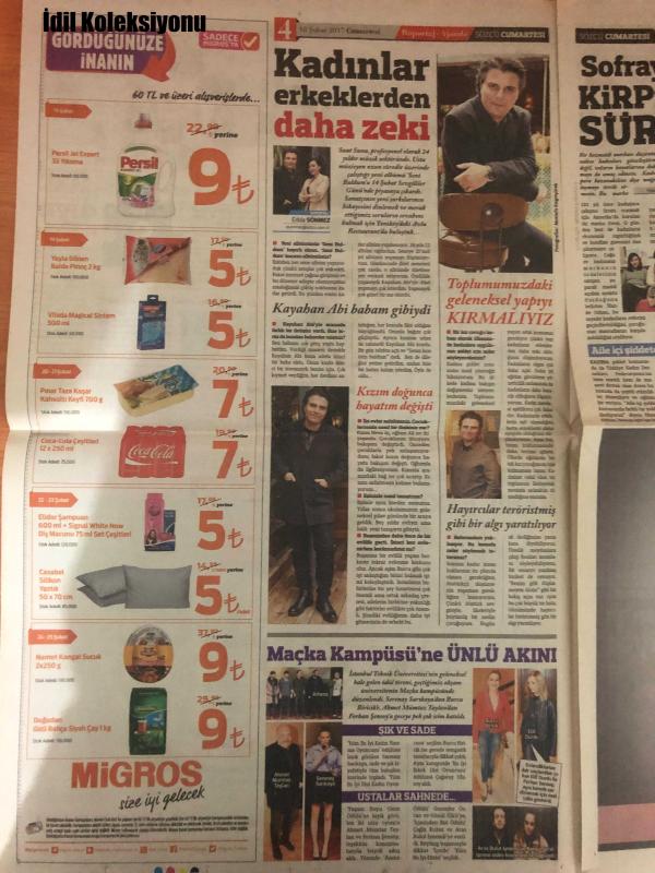 Sözcü Cumartesi Gazetesi, 18 Şubat 2017, Burak Özçivit, Fahriye Evcen, Gülben Ergen, Demet Ozdemir, Ay Işığında Mavi Gözükmek, Burak Yamanturk, Hande Dogandemir, Ngorongoro Krateri, Melisa Sozen, Hande Subaşı, Suat Suna, Gizem Karaca, Serenay Sarıkaya, Serdar Ortac, Chloe Loughnan, Irfan Degirmenc, Özlem Gürses, Kıvanç Tatlıtuğ, Kerem Bursin, Ülker Kaleli, İt-1400, Gülben'den Esaslı Aşk Şarkısı, Tasarıma El Attı, Ay Işığında Mavi Gözükmek, İlk Sevgililer Günümüzü Ayrı Geçirdik, Ngorongoro Krateri, Kendime Yatırım Yapıyorum, Hayat Şarkısı'na Taze Kan, 'İçimdeki Fırtına' Dizisinin Başarılı Oyuncuları, Gençler Serenay'ı Seçti, 47'nci Yaşa Romantik Kutlama, Hayır'cıları 9 Köyden Kovalım Mı?, Reklam İçin Kıvanç'tan Vazgeçemediler, Erdal Bakkal Fena Yakalandı, Leyla ile Mecnun'un, Bozkurt Tuğba Yurt'un AŞK ACISI, Sevgililer, Anne Kız El Ele Alışverişte, Ekranın Yeni Dizisi 'Adı Efsane'de, Amaç: Kaliteyle Fark Yaratmak, Dans ve Şarkı Vazgeçilmezim, Kadınlar Çok Yetenekli adlı eser, Kitap > Süreli Yayınlar > Gazeteler kategorisinde İkinci El olarak satıştadır.