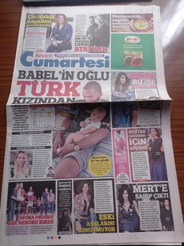 Sözcü Cumartesi Gazetesi - 27 Mayıs 2017 - Migren - Burcu Hanif - Emel Müftüoğlu -Claudia Schiffer'in Otuz Yılı - Babel'in Oğlu Türk Kızından - Cem Yılmaz Çekimlerine Ağustos'ta Başlayacağı Arif V 216 Okuma Provasına Seyirci Aldı - Hande Erçel - Sertab Erener - Mert Fırat - Yüzyılın En İyi Giyinen Lideri Atatürk adlı eser Türkçe dilindedir.