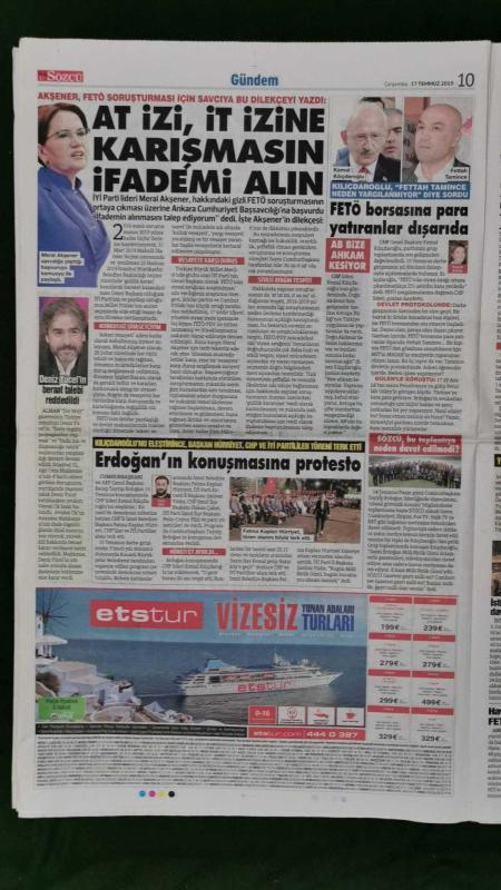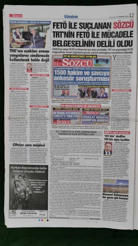 Kitap 2019 yılında yayınlanmıştır. 20 sayfadır. Sözcü Gazete 17 Temmuz 2019 Fetö Borsasına Para Yatıranlar Dışarıda,Mansur Yavaş,Hazım Caner Can,Selçuk Özdağ,Naomi Campbell,Tyler Boyd,Clinton N'Jie,Fikret Orman,Michael Seri,Neymar Jr,Mevlüt Çavuşoğlu,Donald Trump,Ali Yerlikaya,Ender Saraç adlı eser Türkçe dilindedir.