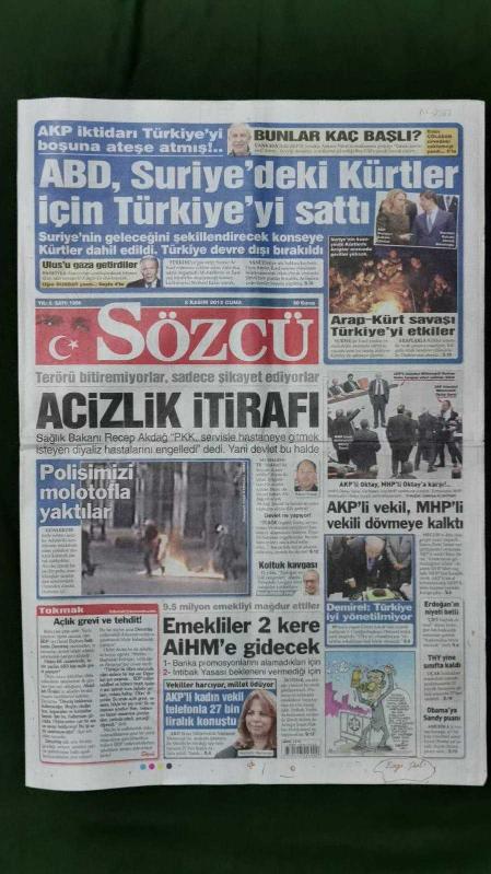 Sözcü Gazete 2 Kasım 2012 Acizlik İtirafı,Hillary Clinton,Akmet Davutoğlu,Oktay Saral,Burhan Kuzu,Oktay Vural,Süleyman Demirel,Manuel Fernandes,Fikret Orman,Batuhan Karadeniz,Alexander Kerzhakov,Emre Belözoğlu,Fatih Terim,Ünal Aysal,İrina Shayk,Recep Akdağ,Beşar Esad,Barack Obama,Hayrunisa Gül,İdris Şahin,Nimet Baş,Emine Erdoğan,Orhan Gencebay,Sevim Emre,Özcan Deniz,Fahriye Evcen,Sibel Can,Wilma Elles Trakya Cam Reklamı,Yeni Rakı - Opel Reklamı adlı eser, Kitap > Süreli Yayınlar > Gazeteler > Türkiye > Genel > Günlük kategorisinde İkinci El olarak satıştadır.