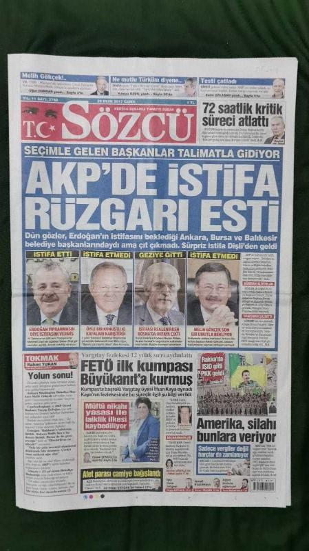 Kitap 2017 yılında yayınlanmıştır. 20 sayfadır. Sözcü Gazete 20 Ekim 2017 AKP'de İstifa Rüzgarı Esti,Melih Gökçek,Recep Altepe,Ahmet Edip Uğur,Şaban Dişli,Canan Güllü,Abdullah Öcalan,Yaşar Büyükanıt,Paris Hilton,Luis Neto,Sofiane Feghouli,Cenk Tosun,Josef De Souza,Roberto Soldado,Vladimir Micov,Semih Erden,Çoşkun Sabah,Uğur Dündar,Angela Merkel,Theresa May,Emmanuel Macron,Doğu Perinçek,Zekeriya Öz,Engin Özkoç,Cem Yılmaz İş Bankası Reklamı adlı eser Türkçe dilindedir.