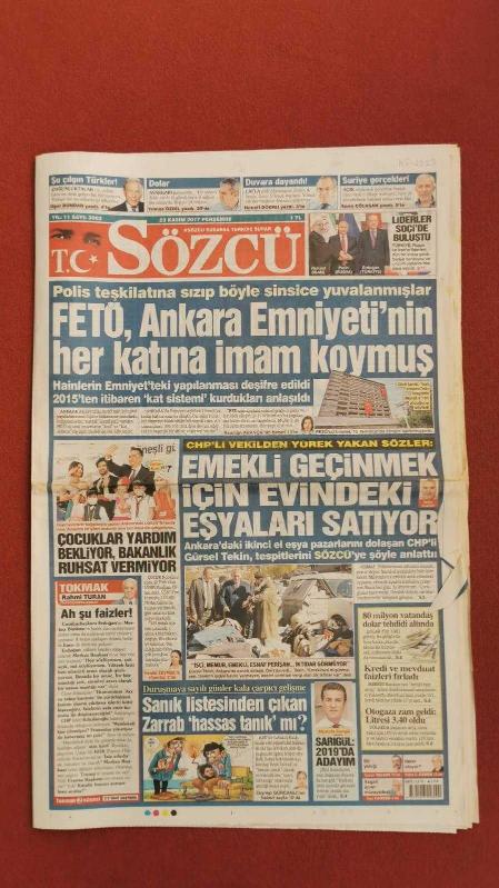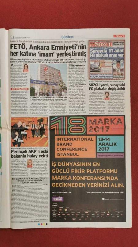 Kitap 2017 yılında yayınlanmıştır. 20 sayfadır. Sözcü Gazete 23 Kasım 2017 Fetö,Ankara Emniyeti'nin Her Katına İmam Koymuş,Üstün Ezer,Mustafa Sarıgül,Gürsel Tekin,Kendall Jenner,Gisele Bündchen,Chrissy Teigen,Pepe,Gökhan Gönül,Şenol Güneş,Ayhan Akman,İgor Tudor,Levent Nazifoğlu,Burak Sergen,Saffet Sancaklı,Doğu Perinçek,Eren Bülbül,Hasan Ruhani,Vladamir Putin,Recep Tayyip Erdoğan,Heather Nauert adlı eser Türkçe dilindedir.